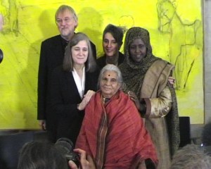 The journalist Amy Goodman broadcasts from around the world. The photograph has been taken in Stockholm in Sweden in December 2008. Jakob von Uexkuell, Amy Goodman, Dr. Monika Hauser, Krishnammal Jaganathan and Asha Haji – the sister laureates which received the Right Livelihood Award in 2008. She has covered also the U.N. Climate Change Summit in Copenhagen in Denmark in 2009. Photo: Andreas Klamm Sabaot