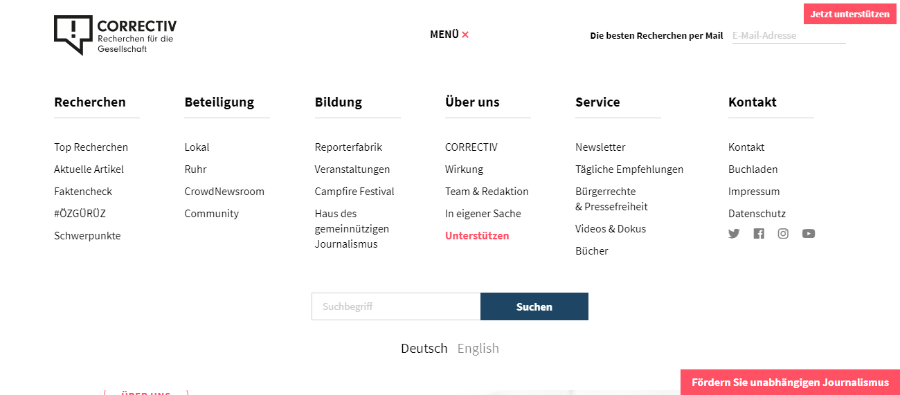Das Recherche-Netzwerk Correctiv bittet um Unterstützung bei der investigativen Recherche-Arbeit: “Bitte schützen Sie die Pressefreiheit in Deutschland.”