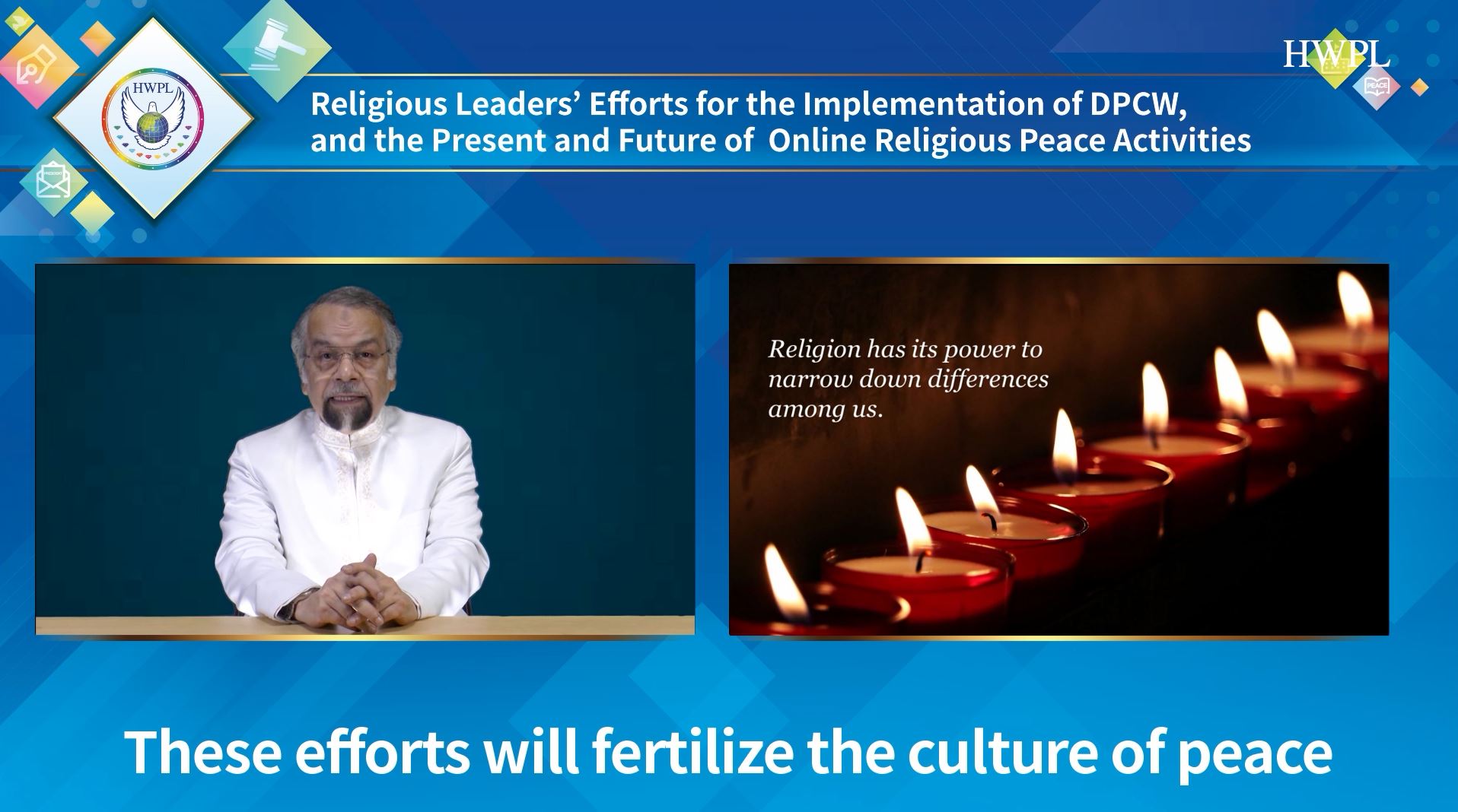 Die gastgebende Organisation, HWPL, ist eine Friedens-NGO mit Sonderberaterstatus bei der UN ECOSOC und assoziiert mit der UN DGC. Mit dem Ziel alle Kriege zu beenden und eine friedliche Welt als ein Erbe für zukünftige Generationen zu schaffen, hat HWPL drei Hauptfriedensinitiativen durchgeführt – die Entwicklung eines internationalen Friedensgesetzes, Versammlungen interreligiöser Dialoge und das Unterrichten von Friedenspädagogik. Die Erklärung des Friedens und der Beendigung der Kriege (DPCW) beinhaltet Prinzipien der Friedenskonsolidierung wie das Verbot der Anwendung von Gewalt, die Entwicklung freundschaftlicher Beziehungen und die friedliche Beilegung von bewaffneten Konflikten. Sie betont die internationale Zusammenarbeit auf der Grundlage von interreligiösen Dialogen und zivilgesellschaftlichem Engagement, um eine Kultur des Friedens zu schaffen. Seit der Proklamation am 14. März 2016 hat das auf der DPCW basierende Modell der Friedenskonsolidierung staatliche Anerkennung und Unterstützung im Bereich der interreligiösen Dialoge, der Friedenserziehung sowie der Jugend- und Friedensaktivitäten von Frauen erhalten.