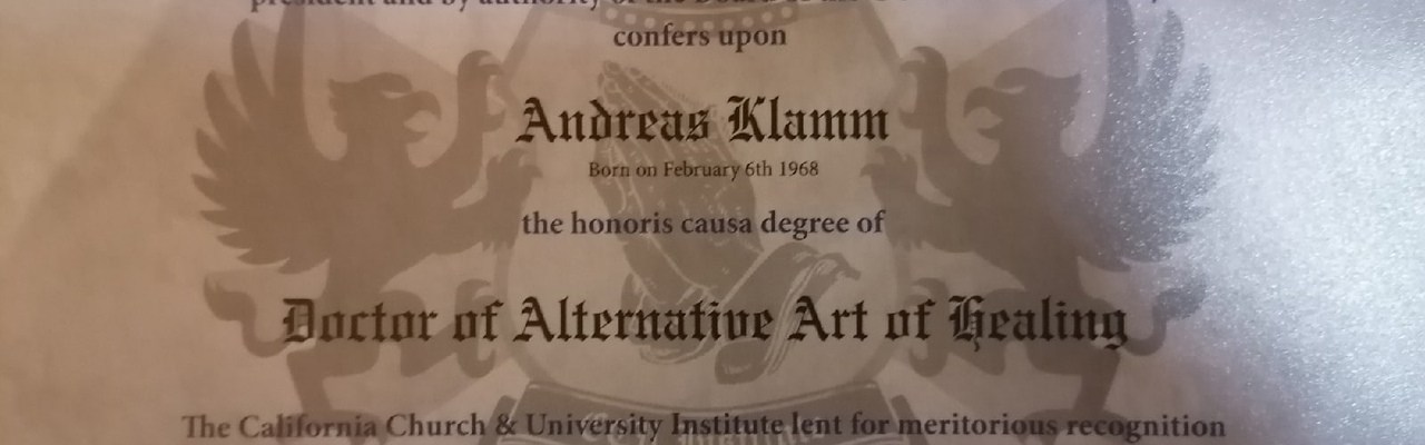 Doctor of Alternative Art of Healing von der California Church & University Institution INC, Florida fürAndreas Klamm. Foto: mid