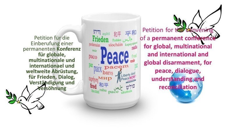 Bereits am 15. März 2019 hatte ich eine Petition für die Sofortige Einberufung einer Konferenz für globale Abrüstung und für Frieden an den Deutschen Bundestag gesendet, vergleiche bitte https://secure.avaaz.org/community_petitions/en/Deutscher_Bundestag__Sofortige_Einberufung_und_Schaffung_einer_Konferenz_fur_Abrustung_und_Frieden