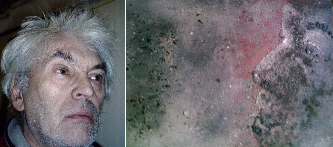 Der teschoslowakische Maler Karl Heinz Nagel und sein Asche-Gemälde mit dem er Kindern und Menschen in Haiti helfen will „Überlebende Frau in Asche aus Haiti“. Fotos: khn